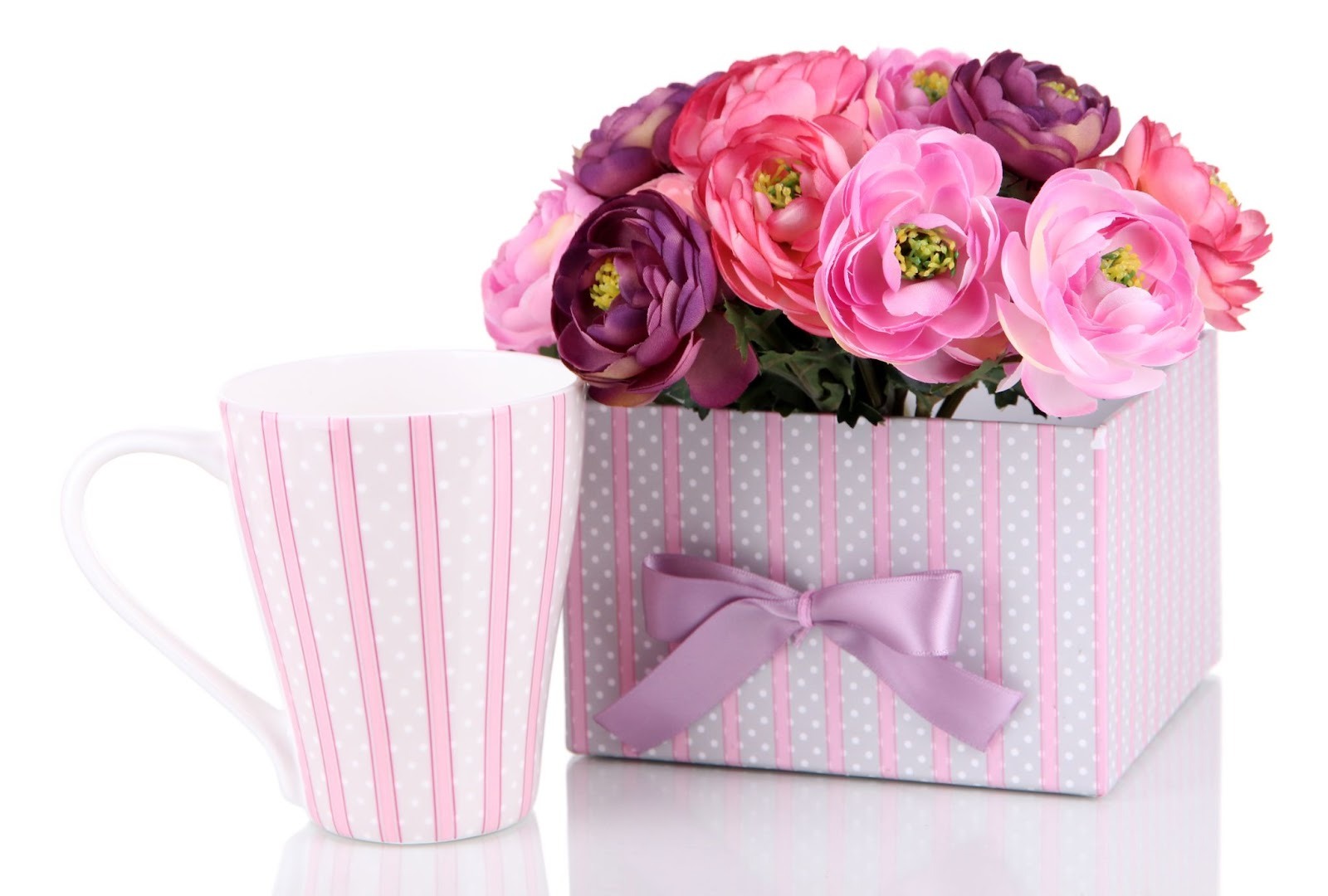 Uma composição delicada pode incluir flores em tons suaves, como rosa claro, branco ou lilás, acompanhadas de doces e uma vela aromática. Esse tipo de presente criativo com flores transmite cuidado, leveza e sensibilidade, sendo uma escolha bastante popular para aniversários.