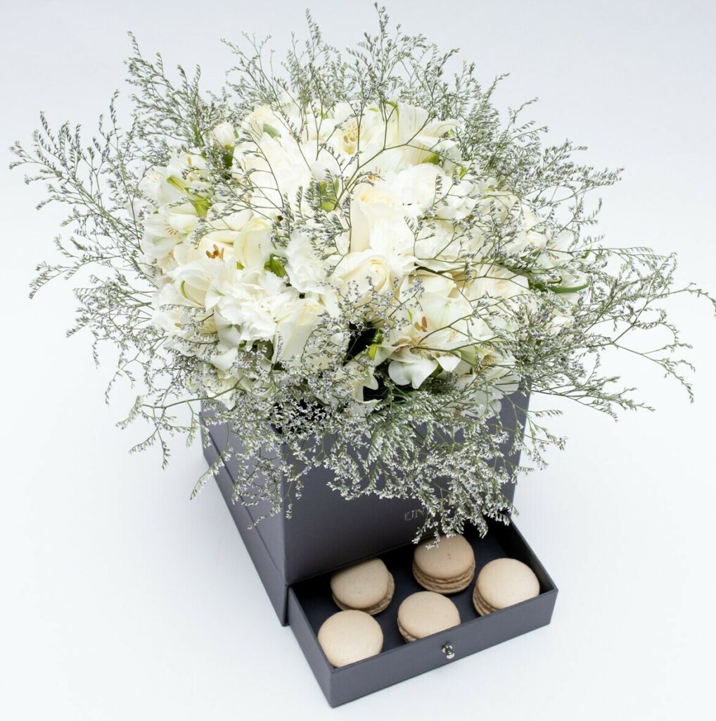 Kit Flores, Macarons e Mini Chandon – Aniversário