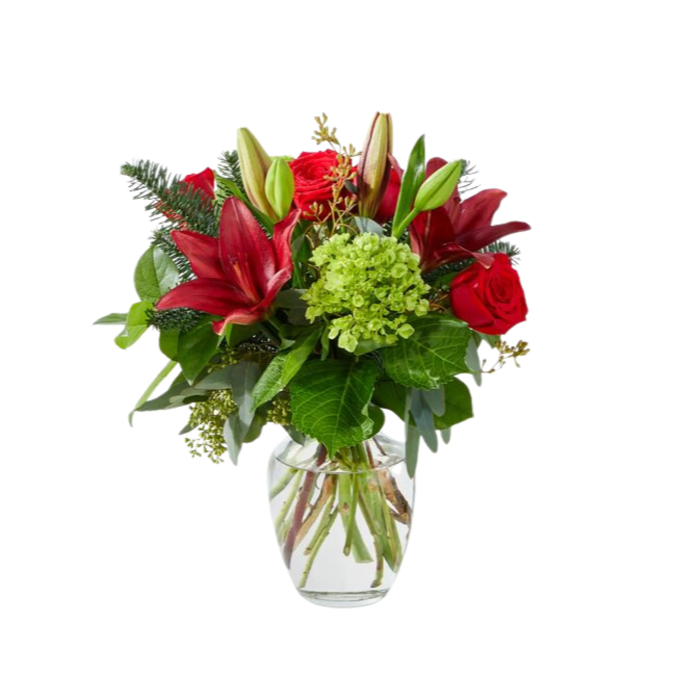 Arranjo De Astromélias Vermelhas Em Vaso De Vidro – Tiffany