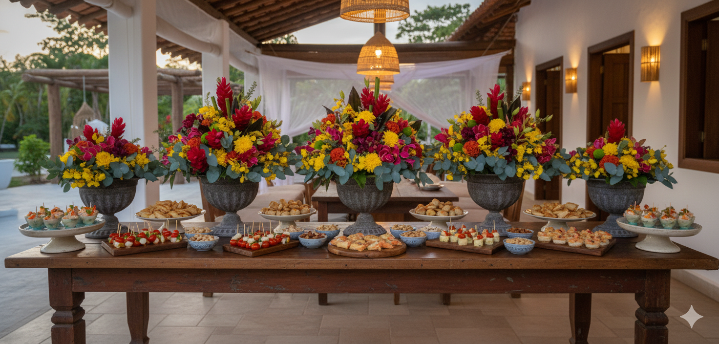Este arranjo Tropical Chic é uma verdadeira declaração de estilo. A composição une flores exóticas de presença escultural, cores vibrantes e texturas contrastantes, criando um visual sofisticado, contemporâneo e altamente decorativo.