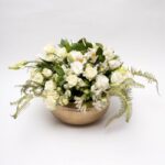 Celebre a pureza e a sofisticação com este deslumbrante arranjo de flores brancas, delicadamente disposto em uma elegante bacia dourada. A combinação de rosas brancas exuberantes, a leveza graciosa da alstroeméria e o toque texturizado do eucalipto criam uma composição floral harmoniosa e atemporal. A bacia dourada, com seu brilho sutil, adiciona um toque de luxo e requinte, tornando este arranjo perfeito para presentear em ocasiões especiais ou para decorar qualquer ambiente com um toque de classe.