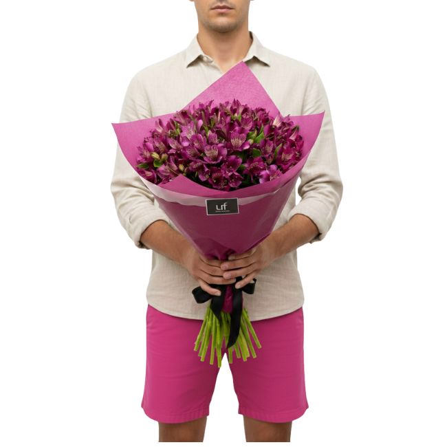 O Bouquet de Alstroeméria Marsala – Miley é um encantador arranjo de flores marsala feito com uma mistura de flores e folhagens entregue em papel de seda da mesma cor. É uma combinação de sensualidade e luxo. O tom marsala é inspirado de um vinho italiano e é considerado sofisticado. O tom transmite ousadia e luxo. A embalagem em papel de seda no mesmo tom confere um toque moderno e monocromático ao bouquet. Cuidar desse arranjo é simples. Coloque em uma vaso limpo e troque a água todos os dias. Evite exposição direta ao sol.