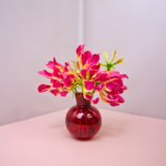 Gloriosas em Vaso – Chérie traz uma composição impactante de flores exuberantes em tons de rosa intenso, dispostas em um vaso vermelho translúcido com design contemporâneo. Esse presente é um statement: perfeito para quem aprecia personalidade, cor e sofisticação na medida certa. Vai além de um arranjo floral — é um gesto memorável.