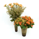 Cravos Alaranjados e Folhagens em Vaso Caramelo Fosco Português