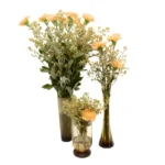 A pureza das formas e o encanto da simplicidade definem este arranjo exclusivo do nosso atelier francês em Moema. Com cravos alaranjados frescos e folhagens verdes naturais, a composição é apresentada em um vaso caramelo fosco de vidro português, peça artesanal da renomada Dámaso – Linha 1913. O design alto e estreito valoriza a verticalidade e confere elegância discreta, ideal para quem aprecia o minimalismo com um toque de sofisticação.